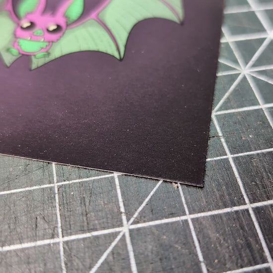 Meet your new favorite night flier! This art print features a cute, hand-drawn digital illustration of a cheerful purple and green bat. It strikes the perfect balance between adorable and spooky, making it a must-have for any Halloween lover's gallery wall year-round!