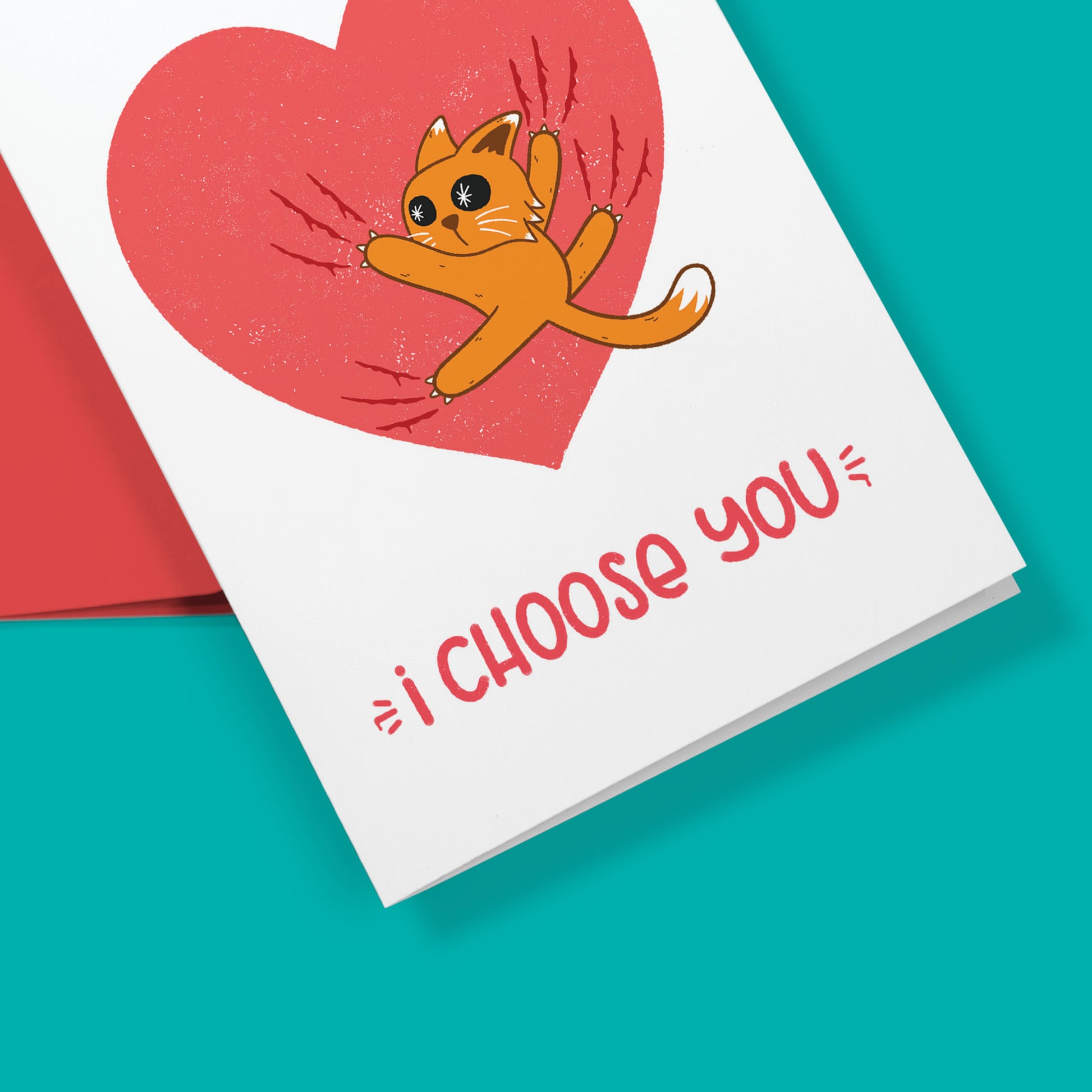Clingy Cat | Valentine's Day Blank Greeting Card