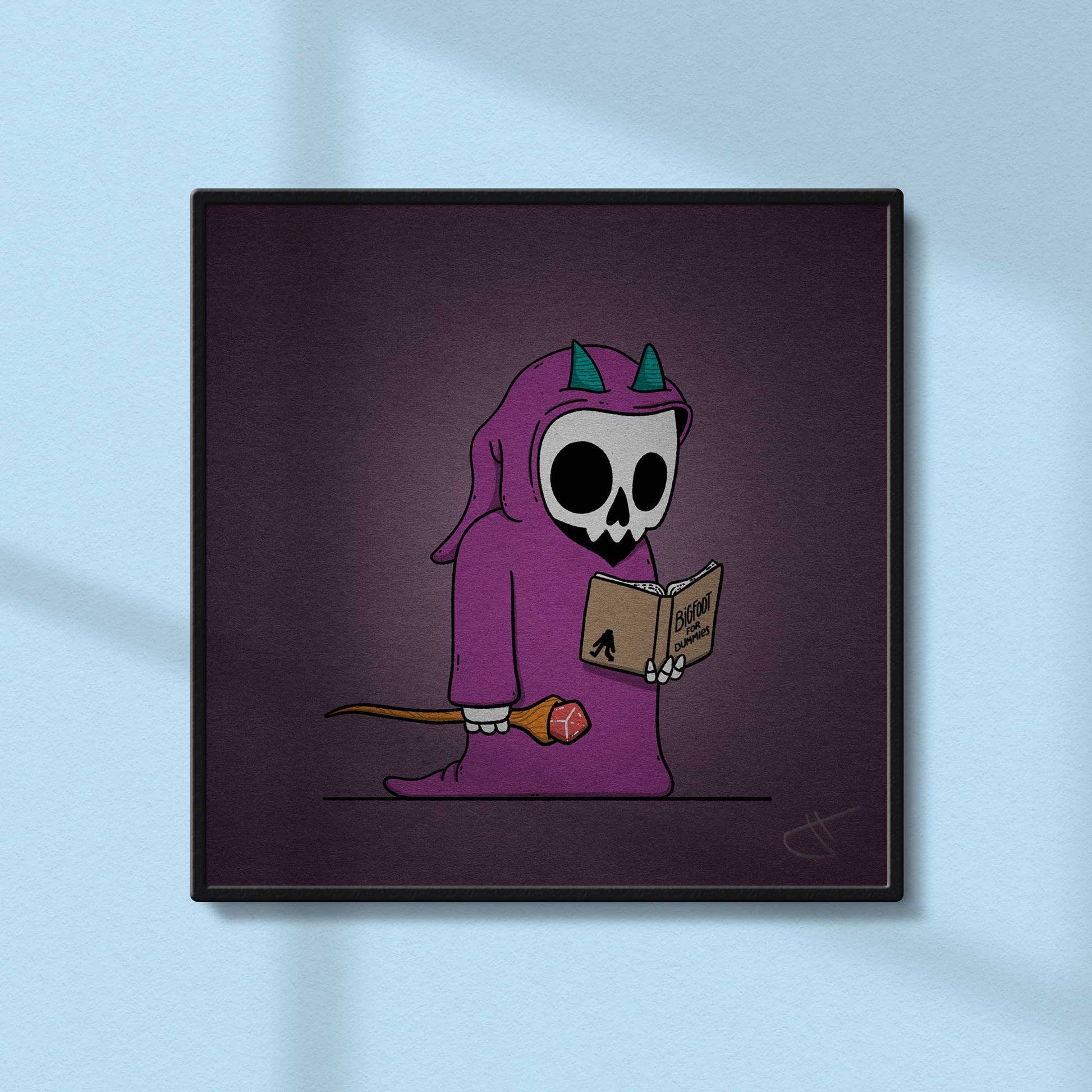 Meet Neco the Necromancer—a pint-sized practitioner of the dark arts with an unexpected passion for cryptid folklore. This charming mini art print captures Neco deep in study, while reading all about everyone's favorite elusive forest dweller. Perfect for fans of witchy humor, paranormal enthusiasts, and anyone who appreciates the delightfully weird intersection of necromancy and Bigfoot conspiracy theories. A quirky addition to any collection that celebrates the spooky and the strange.