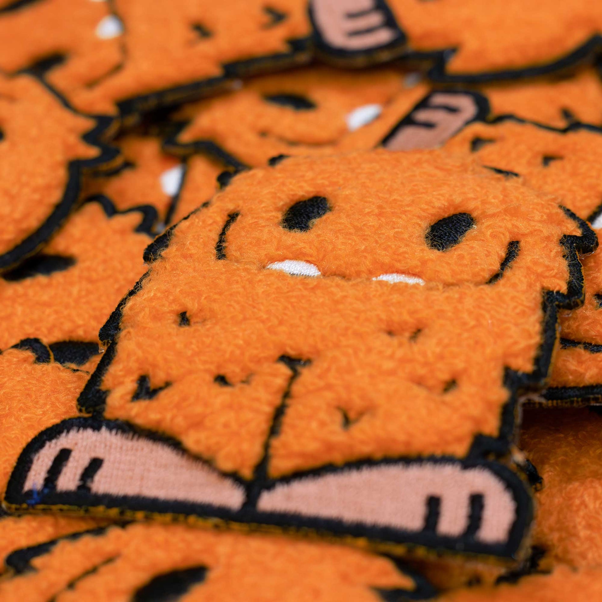 Bring a burst of adorable monstrous charm to your favorite gear with this unique, soft-touch iron-on patch featuring Reggie, the cutest little orange fluffball you'll ever meet!