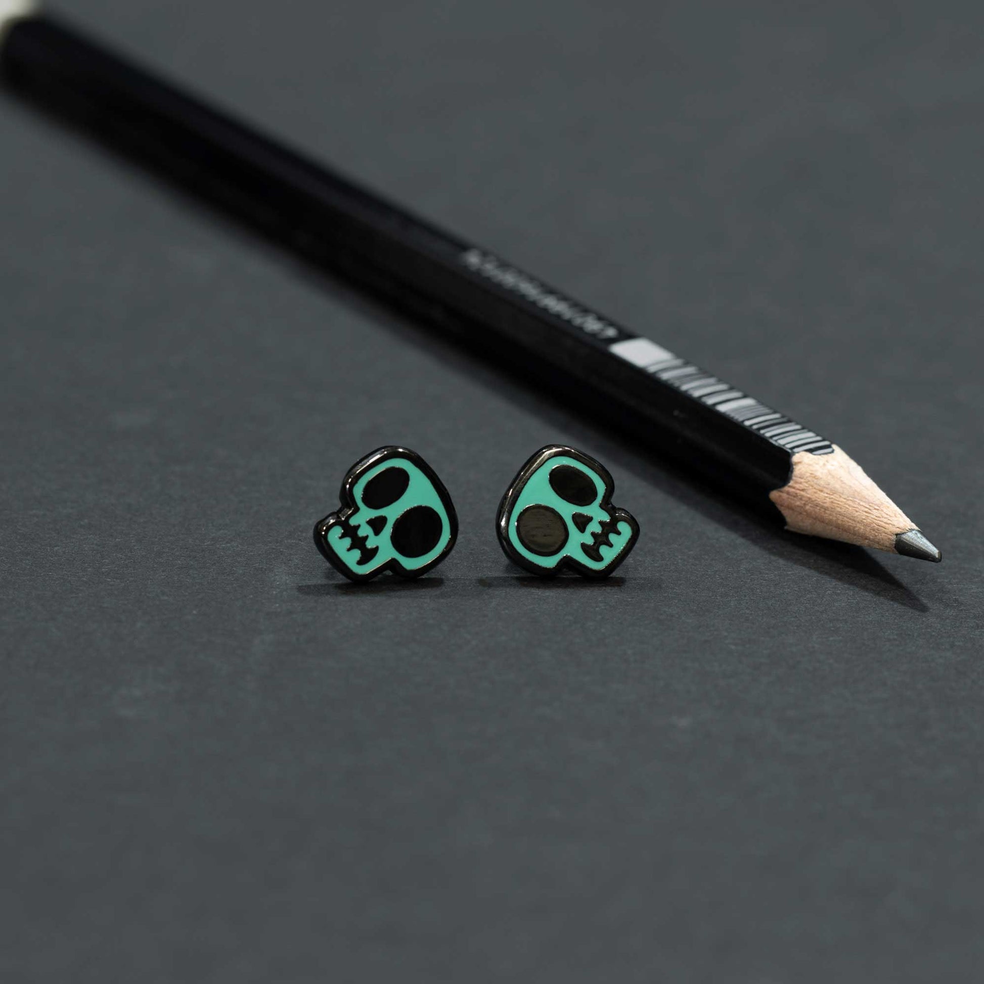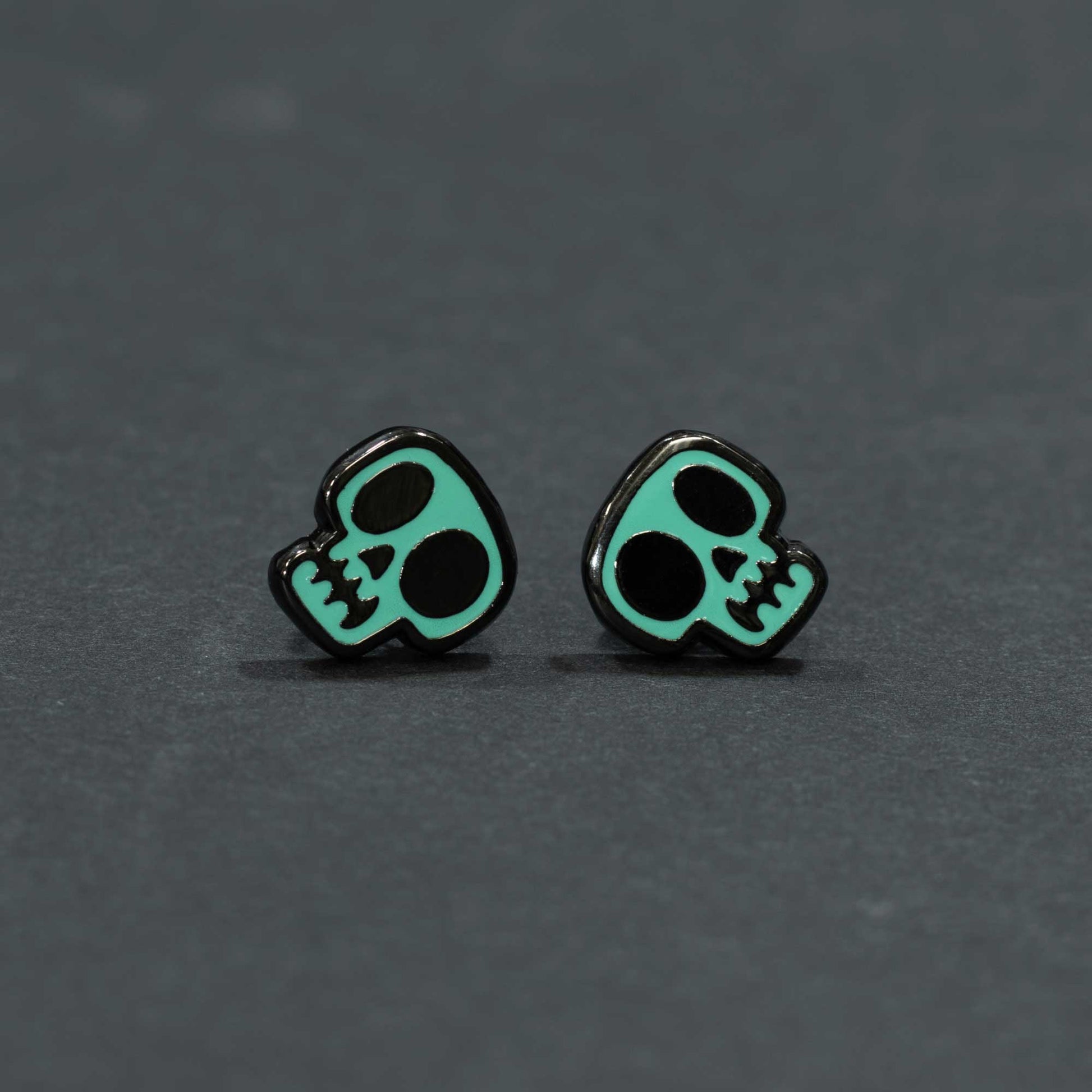 Give your look a hauntingly cool upgrade with these vibrant teal skull stud earrings. While their glow-in-the-dark cousins handle the night shift, these skulls bring a bold pop of color that demands attention all day long. They are small enough for effortless daily wear while adding just the right amount of edgy, colorful charm to any outfit.