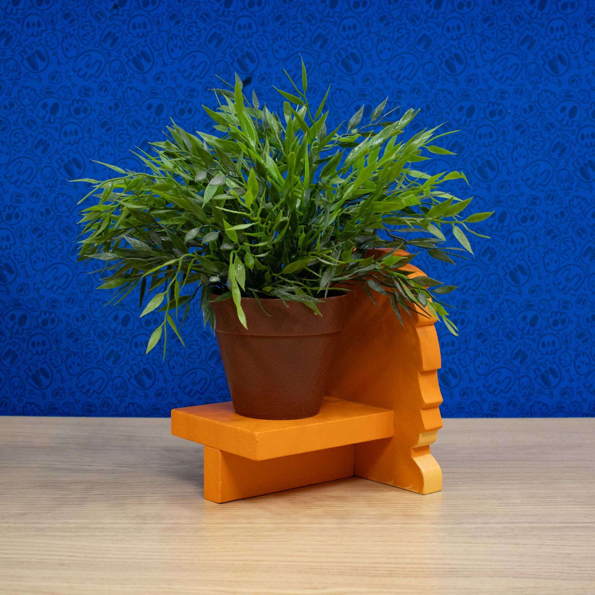 Meet Wilbur, a cheerful wooden monster who loves showing off your plants. Hand-cut from wood and painted with care, this one-of-a-kind piece features a shelf tucked just behind Wilbur, perfect for smaller plants or flowers. As they rise above his head, they create a fun, ever-changing display. Equal parts art piece and functional decor, Wilbur makes a delightful handmade addition to any plant lover’s space.